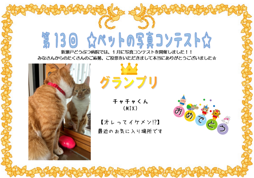 写真募集・院内掲示形式での飼主様方の人気投票によりグランプリが決定☆